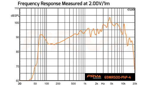 PRV Audio’s 69MR500-PhP-4 midrange loudspeaker offers outstanding durability and a smooth midrange response through 12 kHz. It is a great option for three way system requiring additional midrange support.