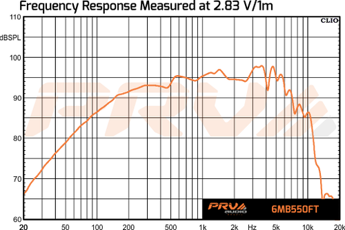 PRV Audio’s 6MB550FT 6.5″ Forte Series midbass was specially tailored to give you more Xmax and less distortion on mid low midbass frequencies, with its Peak-to-Peak excursion going up to 14 mm (0.55″) this speaker can give a heck of a punch!