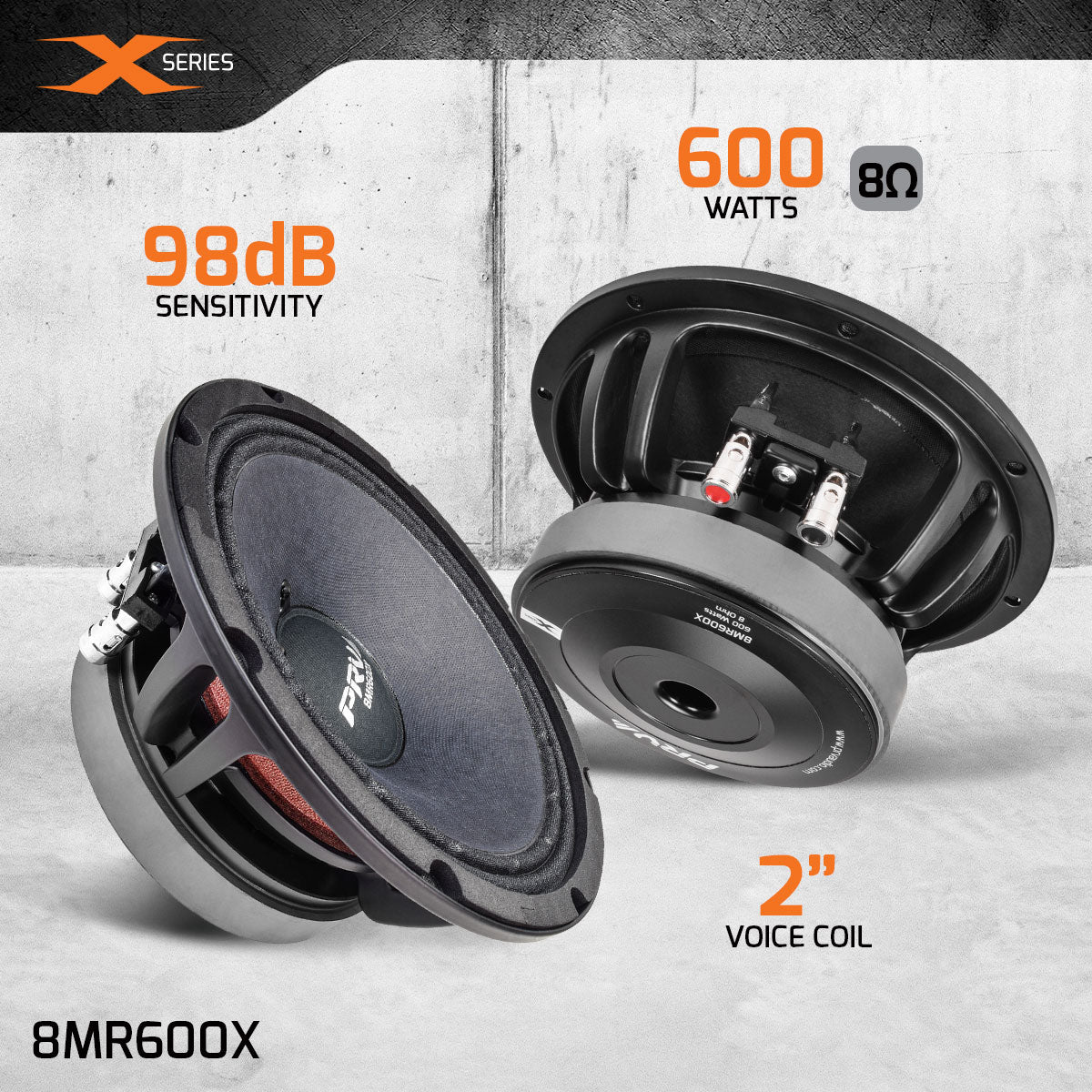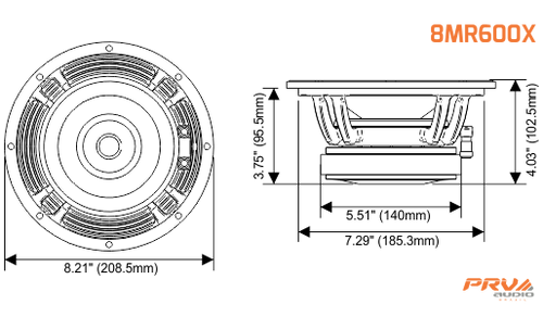 X-treme midrange performance is what PRV Audio’s 8MR600X is all about. Made to be a class leading midrange in the pro audio realm, this driver has a sensitivity of 98 dB and only weighs 7 pounds. This low frequency driver is optimized for professional audio or MI (musical instrument) speaker system applications, a car audio version is available at 4ohms 8MR600X-4