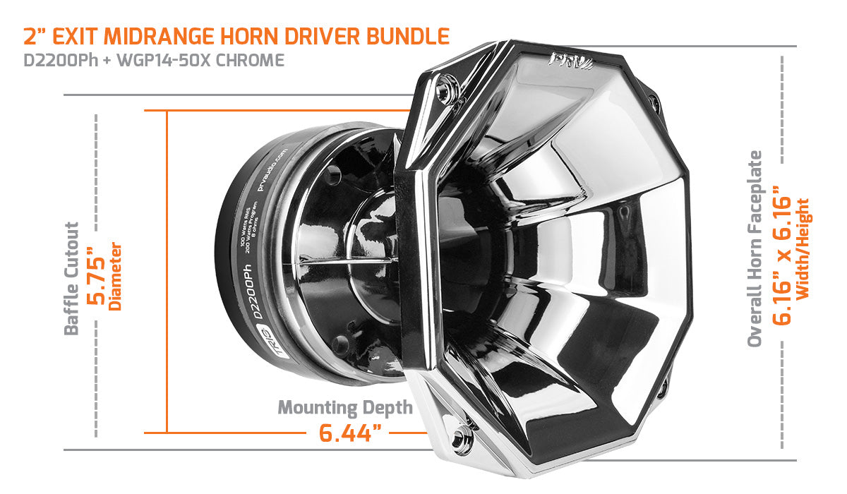 2” Exit Midrange Horn Driver Bundle – D2200Ph + WGP14-50X CHROME