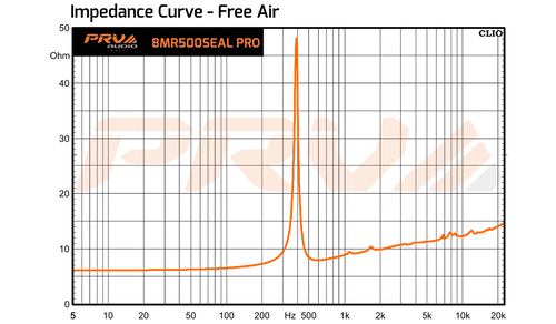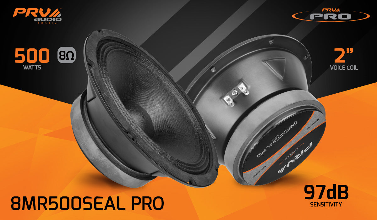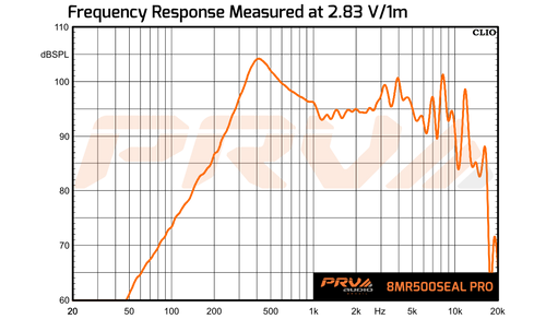 The 8MR500SEAL PRO offers very smooth midrange response to the upper midrange up to 7,500 Hz. Designed to provide definition and high output on midrange frequencies, perfect for use in any high output 3-way system.
