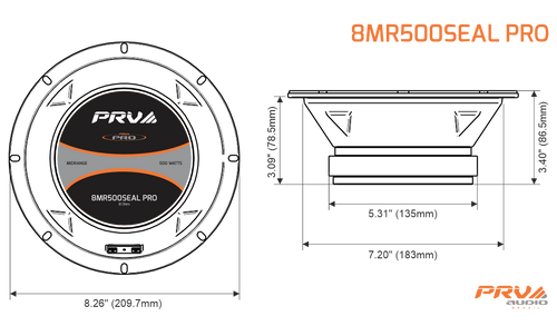 PRV 8″ Sealed Basket Midrange 8MR500SEAL PRO Audio Speaker / 8 Ohm – High Performance Waterproof Cone