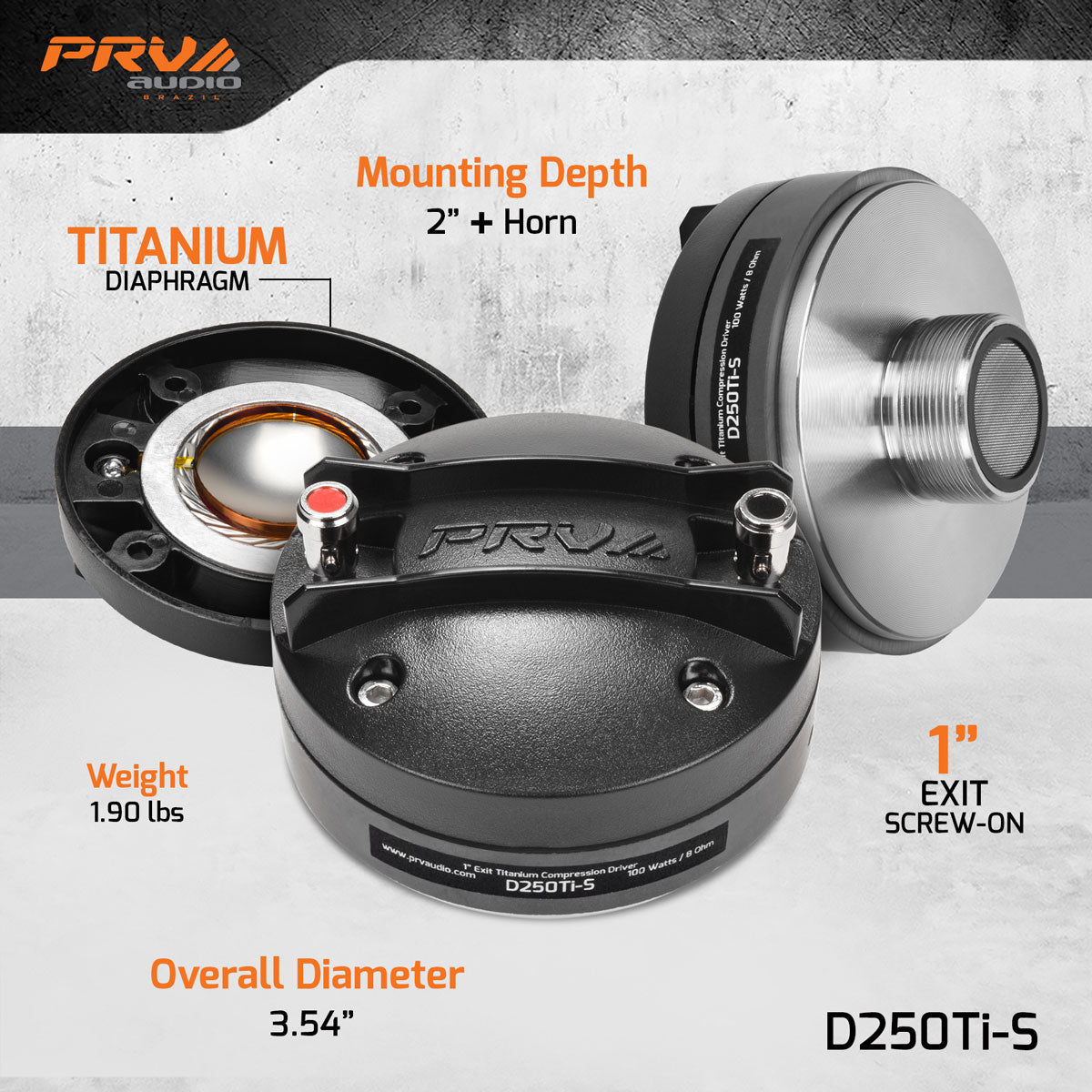 PRV 1″ Exit Screw-on High Frequency Driver 100 Watts 8 Ohm D250Ti-S – Titanium Diaphragm 1.4” Voice Coil, DJ Cabinet Replacement, Lightweight