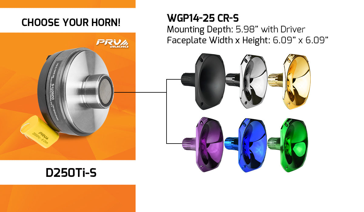 The WGP14-25 horn series is the ideal part of your new custom sound system, adding color and guaranteeing high output.