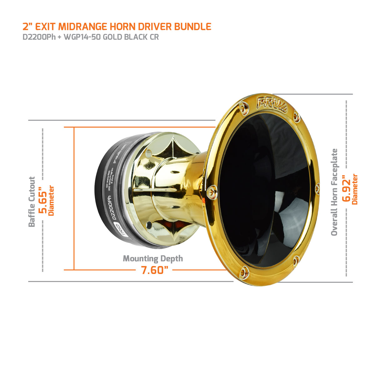 The small diameter of the driver allows front mounting, making it easy to install, without detaching the driver from any WGP14-50 Horn, it requires a baffle cutout of 5.65” and a mounting depth of 7.60" deep. Overall horn faceplate is only 6.92” Diameter. Mounting hardware is included.