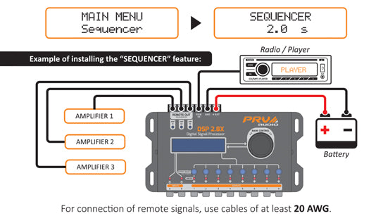 PRV AUDIO Car Audio DSP 2.8X Digital Crossover and Equalizer 8 Channel Digital Signal Audio Processor DSP with Sequencer Remote Relay