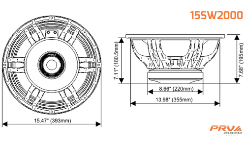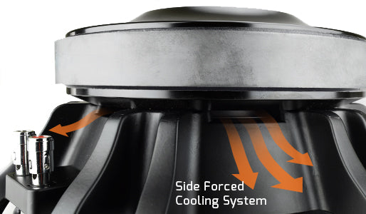 The 15SW2000 loudspeaker has a specially designed forced air ventilation system to ensure proper cooling for long hard play. Our specially designed rigid cast aluminum frame features side forced cooling system openings which allows airflow to cool the voice coil to handle up to 1000 watts RMS without issue. Spring-loaded push terminals make installation a snap while offering a secure connection to your speaker wires.