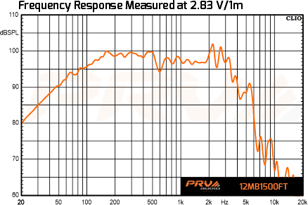 The PRV 12MB1500FT has an excellent linear response, well controlled down to 75 Hz, which makes it a great option for 2-way cabinet systems that require strong BL magnet force and midbass punch. A great new addition to the Forte Series, where more power handling and less distortion on mid low mid bass frequencies is the key.