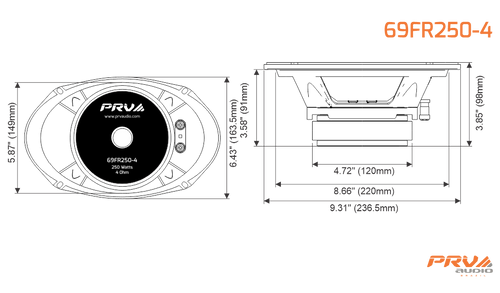 PRV Audio 6×9″ Fullrange Speaker 69FR250-4 PRO Audio Loudspeaker 250 Watts / 4 Ohm
