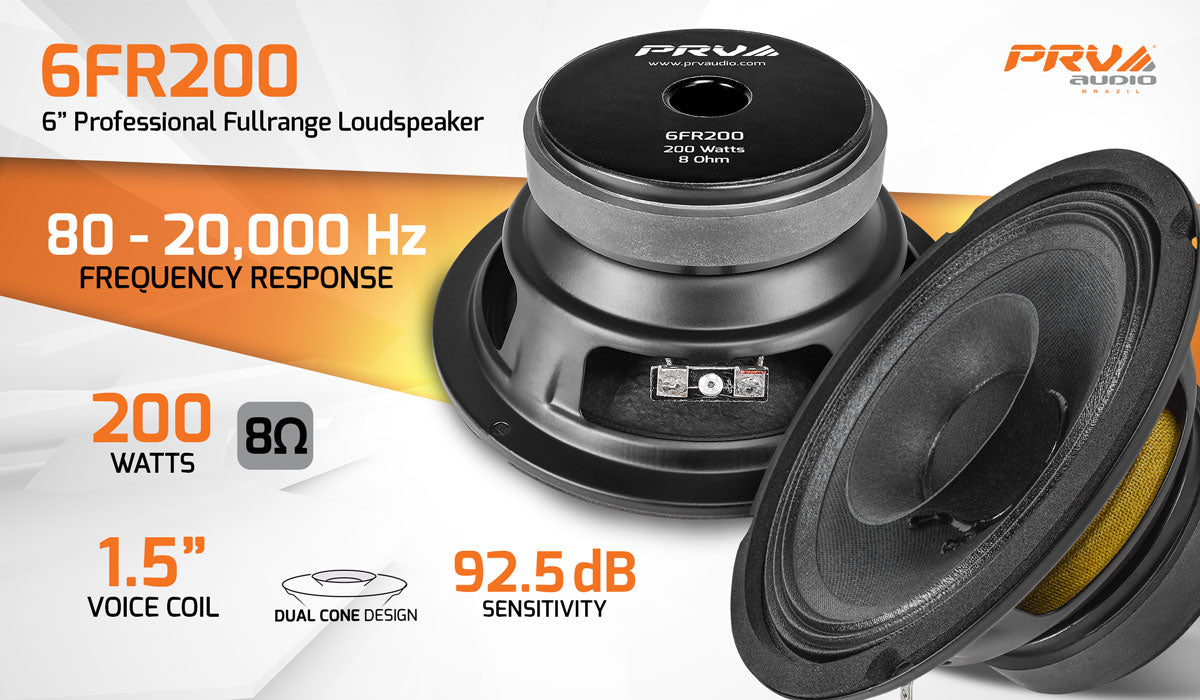 The PRV Audio FR Series sets a new standard of value in high-performance Fullrange speakers. The 6FR200 fullrange speaker is an excellent choice when space is at an absolute minimum, eliminating the need for a tweeter.