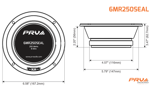 PRV 6.5″ Midrange PRO Audio Speaker 6MR250SEAL Sealed Basket / 8 Ohm