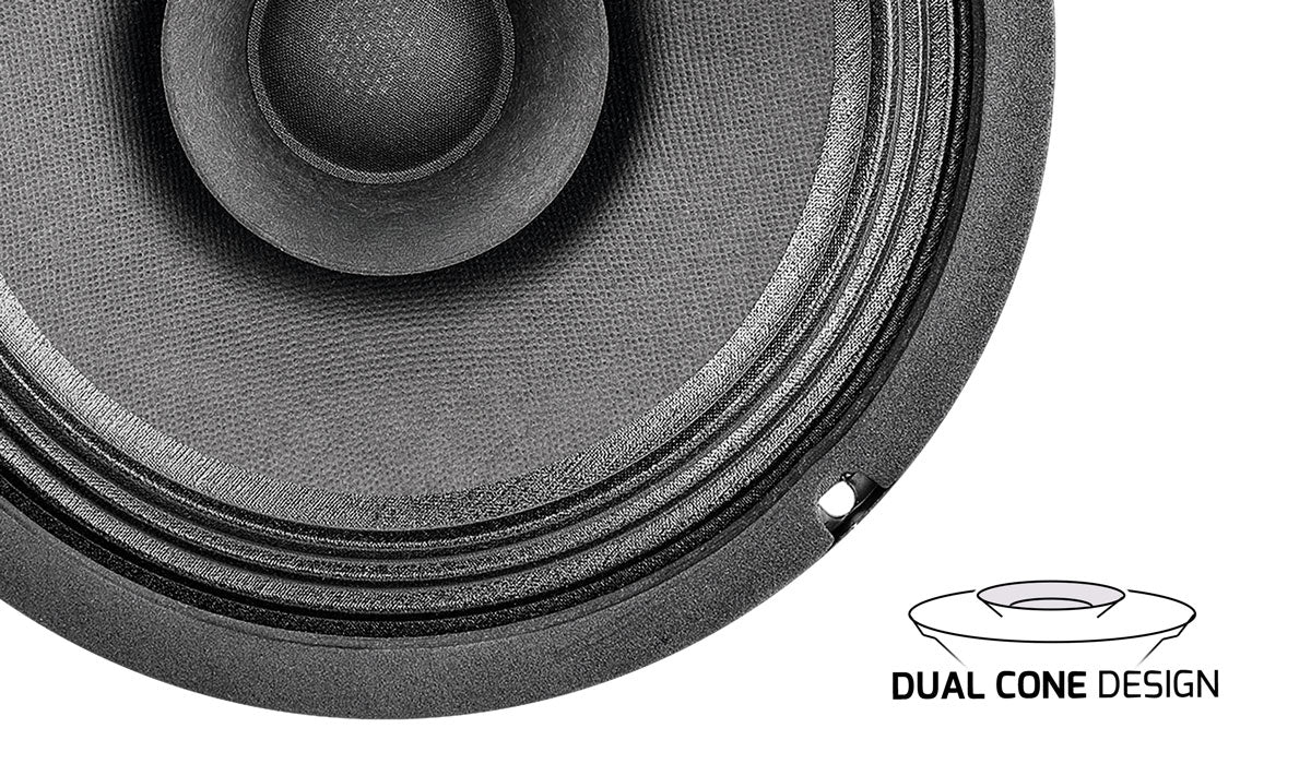 The dual cone setup maximizes sound clarity. The primary cone handles lows to midrange frequencies while the smaller whizzer cone increases high-frequency response, covering a wide range of frequencies from 50 Hz to 18,000 Hz.