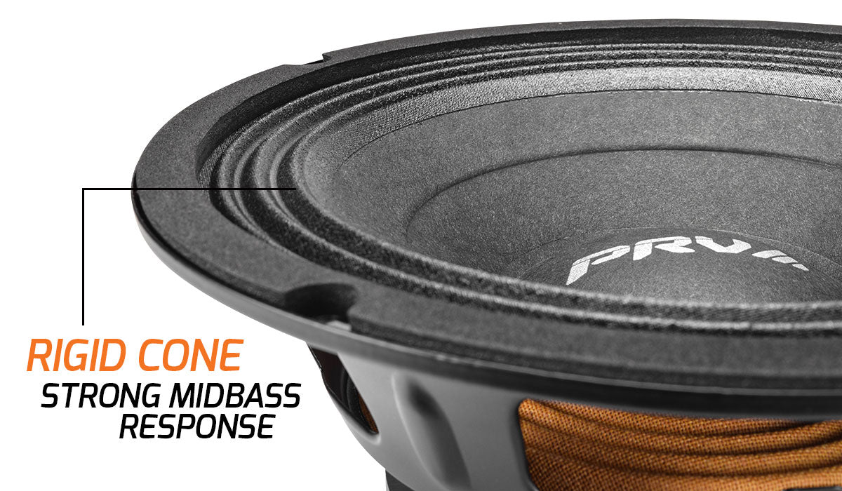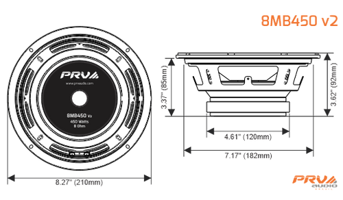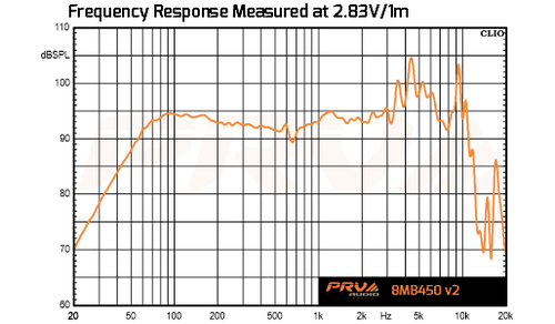 The 8MB450 v2, 8″ PRV Audio Pro Audio Midbass Woofer offers smooth lower response through a punchy mid bass range and a frequency response that takes your applications smoothly through the 7,500 Hz range.