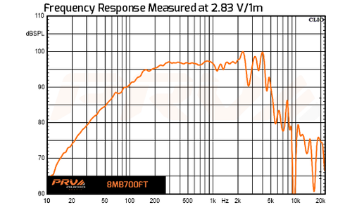 This midbass will stand up to years of serious professional use! Thanks to its special composed spider reduces distortion at a high excursion and double roll surround keep cone travel linear at high excursion.The 8MB700FT is an extremely efficient 8″ midbass from PRV Audio. Due to its wide frequency band and 97 dB sensitivity rating, this speaker is ideal for pairing with compression drivers, on 3-Way system, when used with recommended HPF using PRV Digital Signal Processor DSP