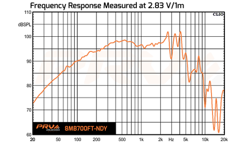 The 8MB700FT-NDY is an extremely efficient 8″ midbass, due to its wide frequency band and 98 dB sensitivity rating, this speaker is ideal for pairing with compression drivers, on 3-Way system (with a suggested 95 Hz, 12 dB/octave high pass filter in place)!