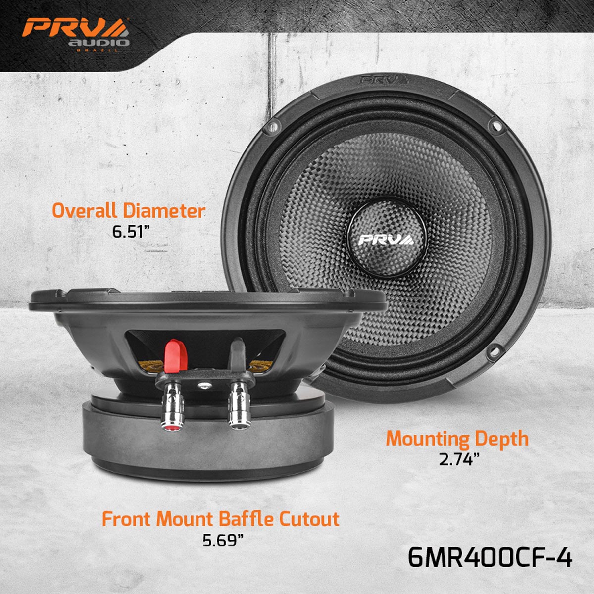 The tailored response of the 6MR400CF-4 comes from its exotic yet supremely engineered carbon fiber cone that delivers the signature PRV audio combination of depth and accuracy on vocal reproduction.