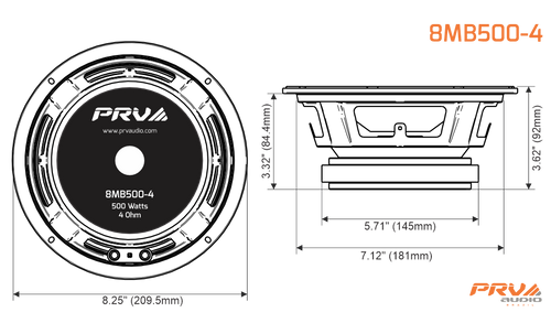 PRV 8″ Midbass Speaker 8MB500-4 Car Audio 500 Watts / 4 Ohm