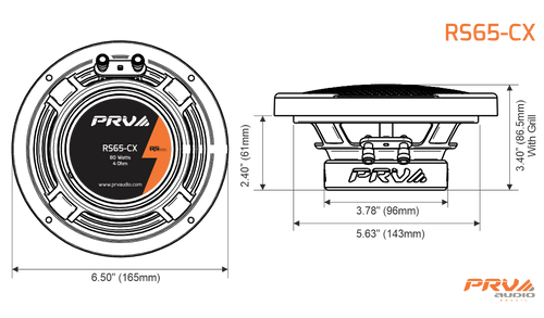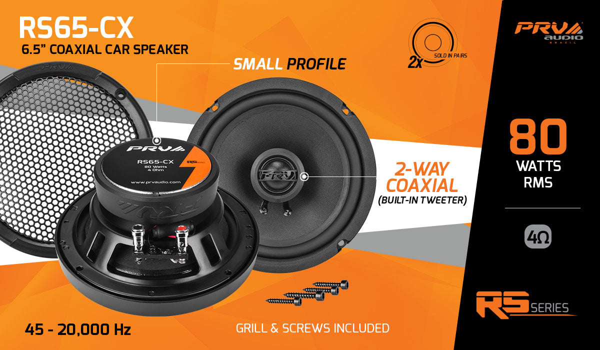 PRV 6.5″ 2-Way Coaxial Car Speaker RS65-CX 160 Watts RSM / 4 Ohm PAIR – Built Neodymium Tweeters with Grill Included