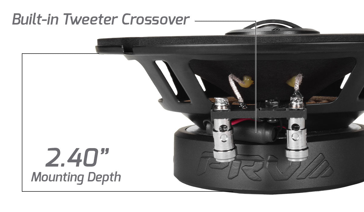 Designed with a 6.5” woofer and a 1” Neodymium Tweeter with built-in crossover, the different components are each responsible for reproducing a specific frequency range, all connected from a single push-terminal, making for an easy installation without having to tune two separate components.