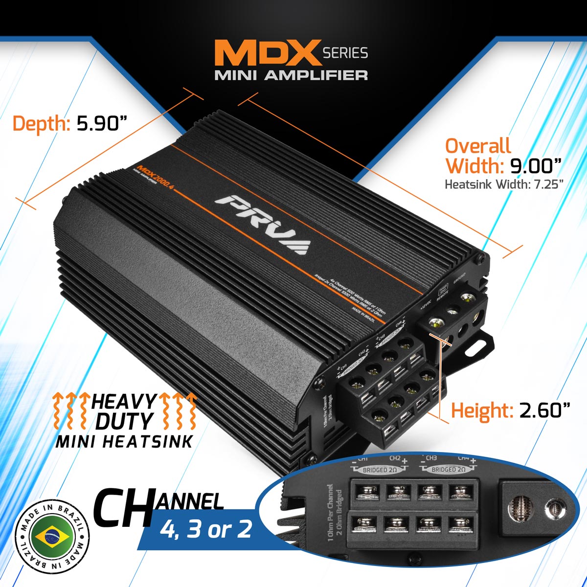 PRV Audio MDX2000.4 1 Ohm MINI 4 Channel Car Audio Amplifier 4 x 500 Watts RMS at 1 Ohm – Ultra Compact Stereo Amp