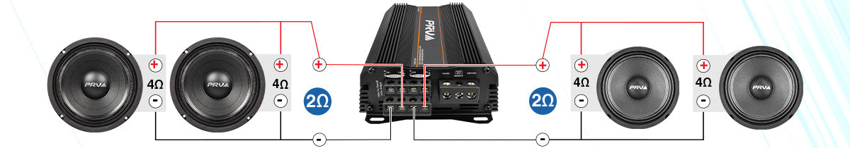 Its high power output channels allow you to install 2x 4 Ohm speakers, drivers or tweeters in parallel per channel, giving up to 500 watts per component.