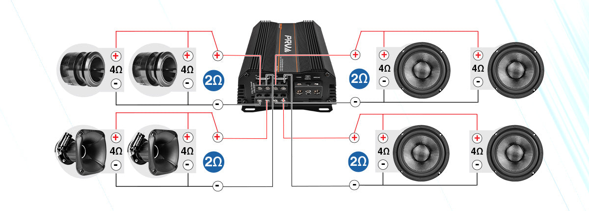 - 2 Channel Bridged – Double the power output to your speakers by bridging two channels. 2x 1000 Watts RMS at a minimum impedance of 4 Ohms per bridged channel.