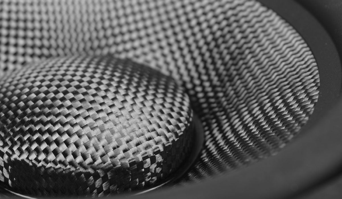 • Damped carbon fiber cone lowers moving mass and minimizes unwanted resonances