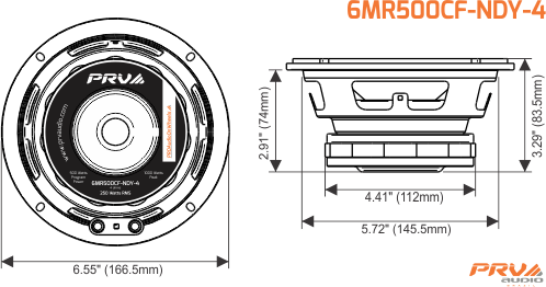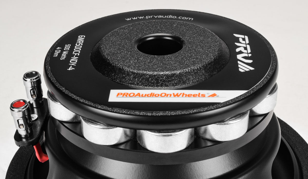 Built for loud, clear vocal performance in tight, compact spaces, PRV Audio’s 6MR500CF-NDY-4 neodymium-powered midrange features a sensitivity of 96 dB (2.83V/1m) and weighs about 3.85 pounds! 4 ohm impedance. Pro Audio On Wheels® Series is dedicated to delivering outstanding pro audio performance to your motorsports application.