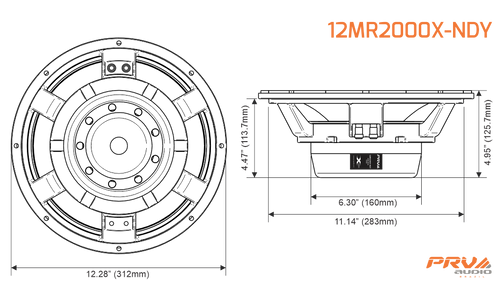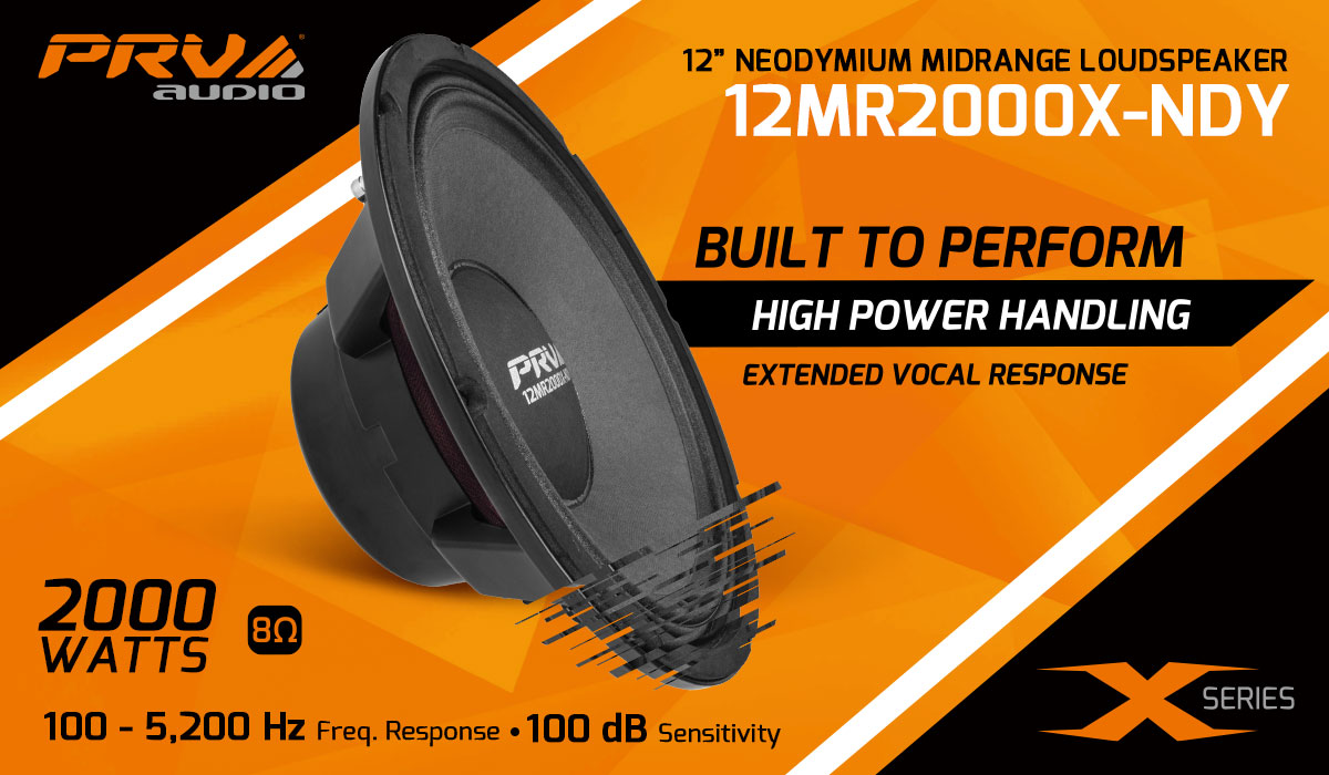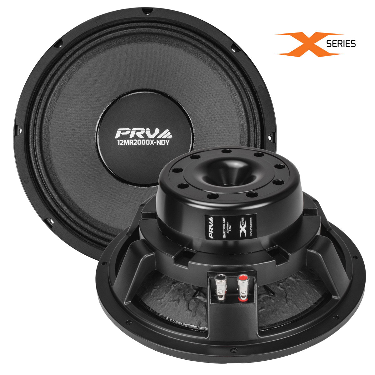 X-treme midrange performance is what PRV Audio’s 12MR2000X-NDY is all about.Made to be a class leading midrange in the pro audio realm, this speaker has a high output sensitivity of 100 dB and only weighs 13.45 pounds. This midrange loudspeaker is optimized for professional audio or (musical instrument) speaker system applications, and large car audio competition systems.