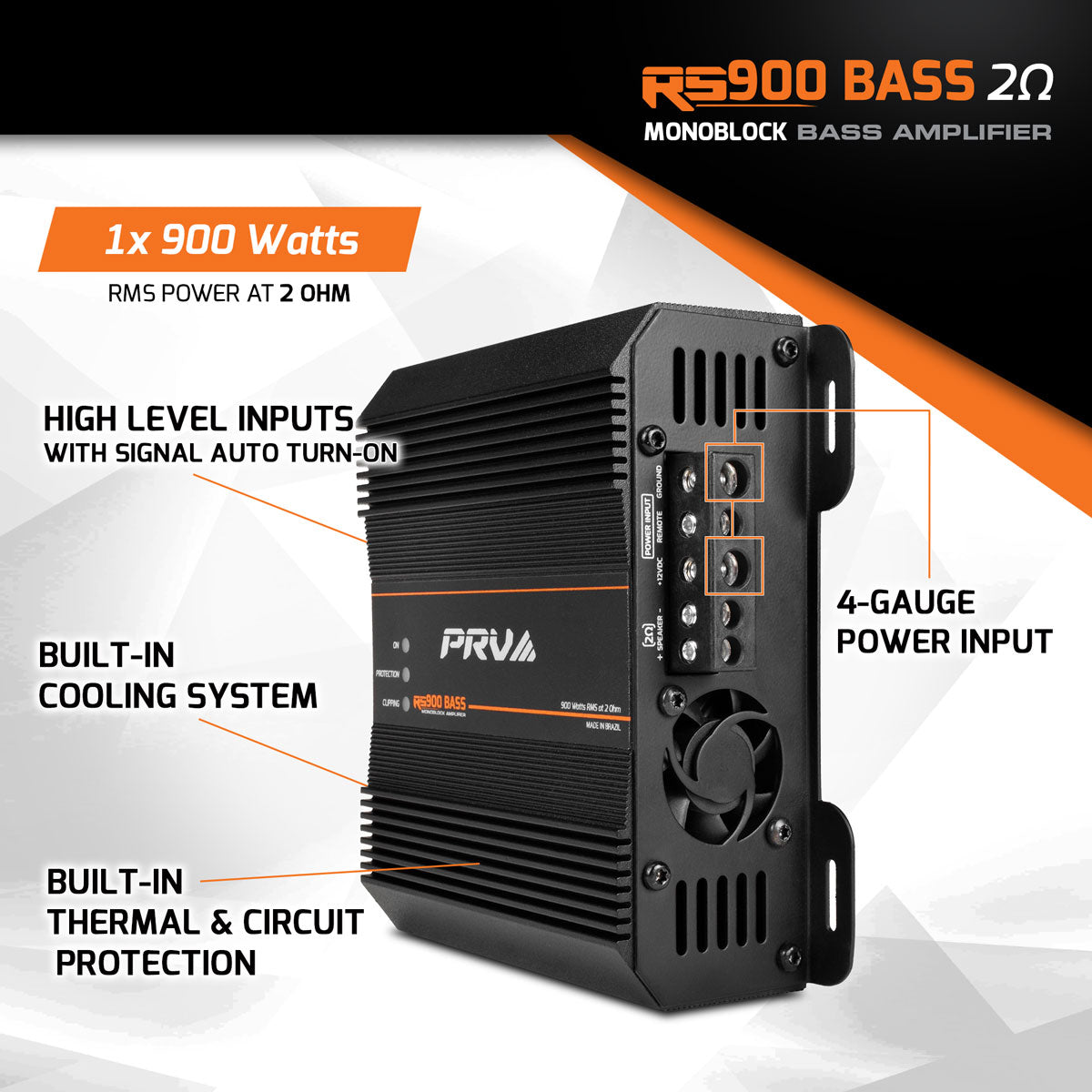 PRV Audio RS900 BASS 2 Ohm Monoblock 1 Channel Subwoofer Amplifier 900 Watts RMS at 2 Ohm