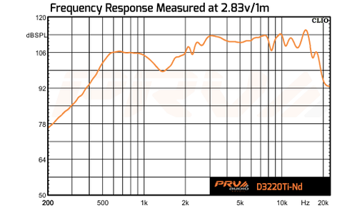 The titanium diaphragm is attached to a 3″ diameter copper-clad aluminum wire with Kapton® former for a high 300 Watts RMS musical power handling, when used with recommended HPF using PRV Digital Signal Processor DSP