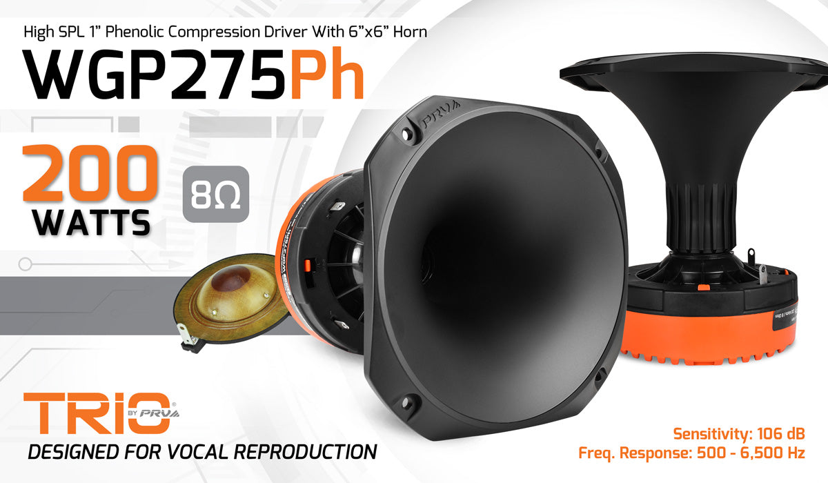 This powerful 1” Exit Phenolic horn driver, the WGP275Ph-S is all about midrange vocal reproduction at low distortion. Built to last with its phenolic diaphragm and copper voice coil, that are designed to reproduce the all-important vocal range with authority!