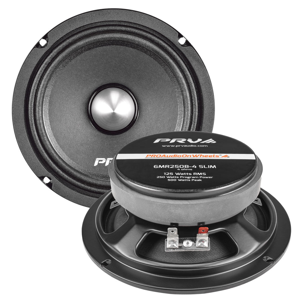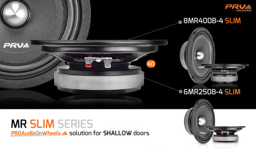 The MR SLIM series was designed as PRO Audio On Wheels solution for shallow doors, featuring an Aluminum Phase Plug (Bullet). This mid is built like a professional mid range loudspeaker, but it has been designed for use in the mobile audio market, as we called it Pro Audio On Wheels®!