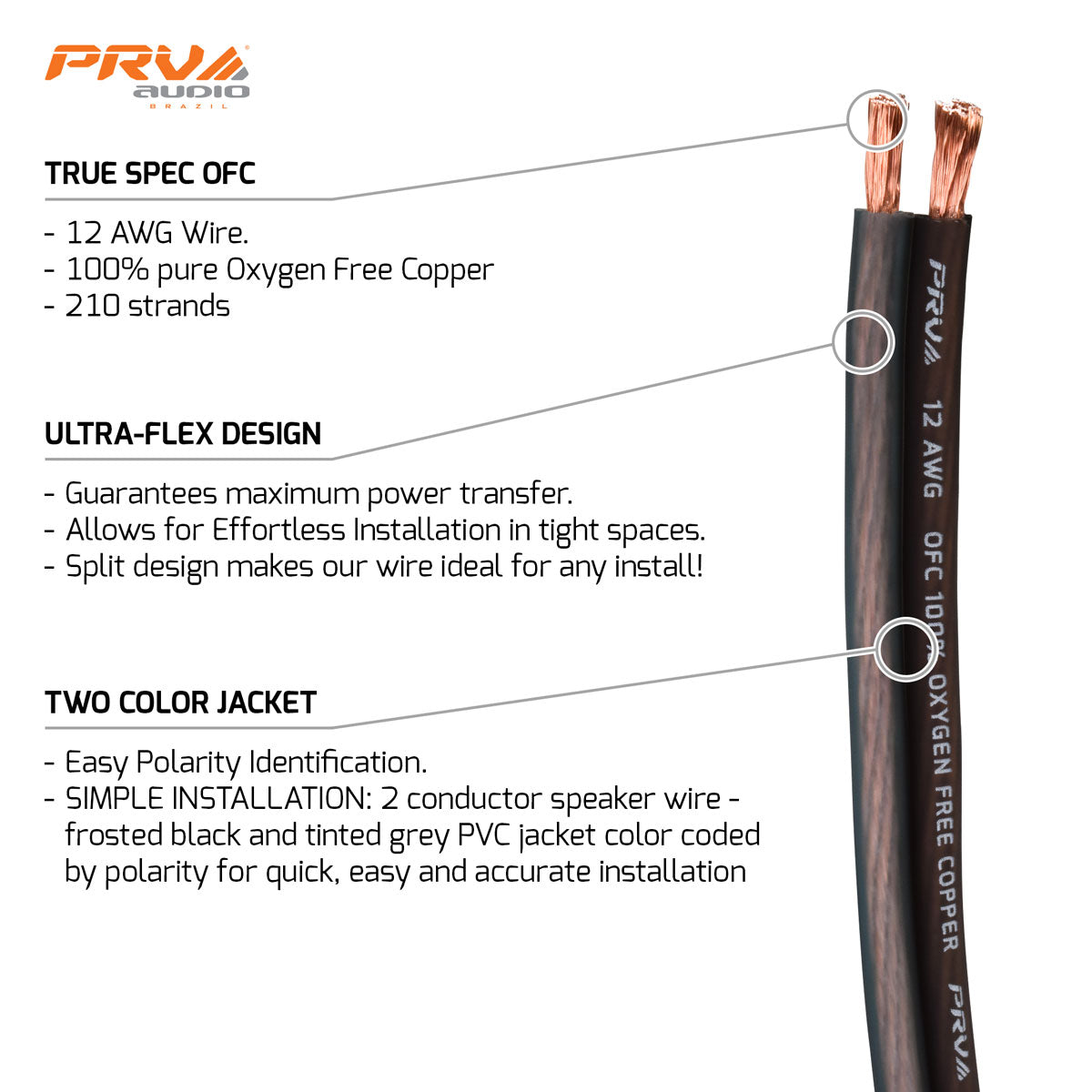 PRV Audio speaker wire provides an easy installation solution for premium performance for car audio systems. With so many low-quality cables on the market, PRV Audio wanted to offer its customers a product that could be counted on to deliver maximum current.