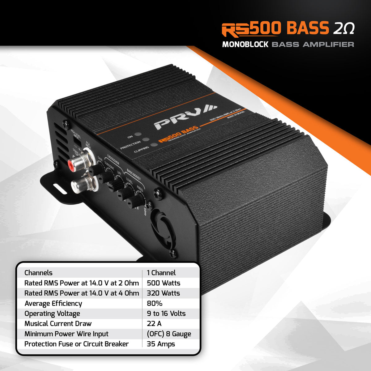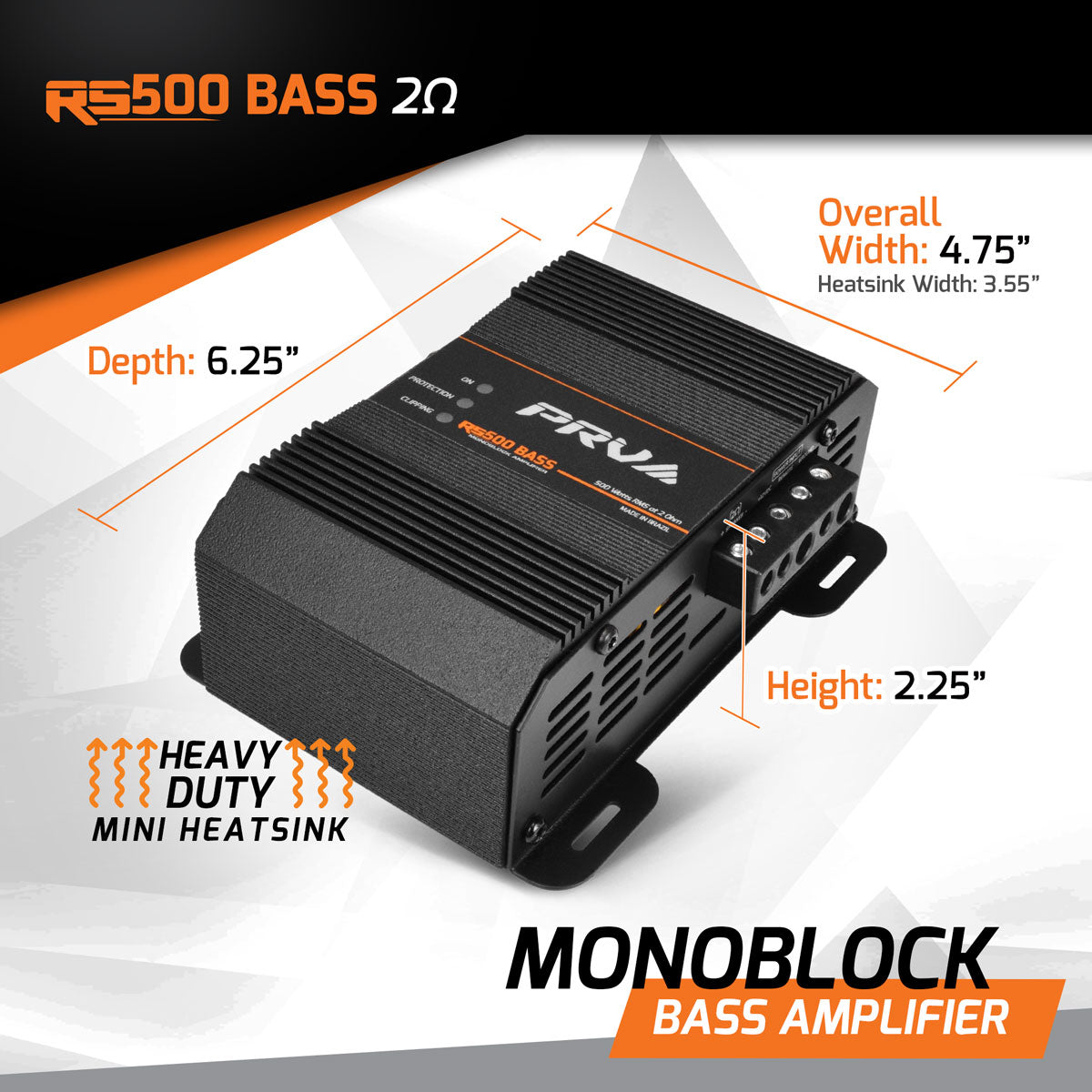 PRV Audio RS500 BASS 2 Ohm Monoblock 1 Channel Subwoofer Amplifier 500 Watts RMS at 2 Ohm