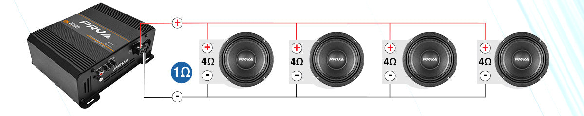 Its high power output channel allow you to install 4x 4 Ohm Speakers in parallel at 1 Ohm, giving up to 500 watts per component.