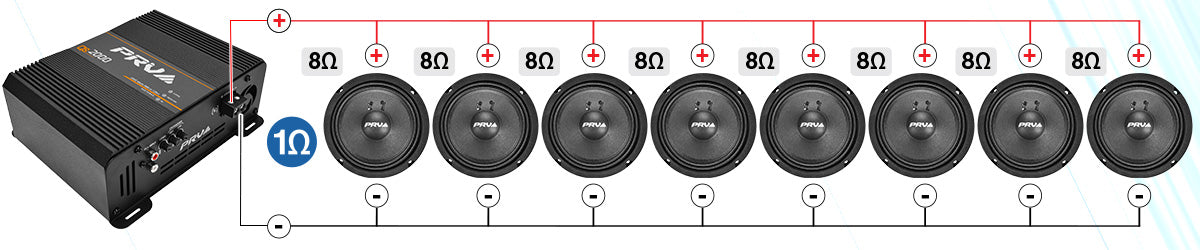 Its high power output channel allow you to install 8x 8 Ohm Speakers, drivers or tweeters in parallel at 1 Ohm, giving up to 250 watts per component.