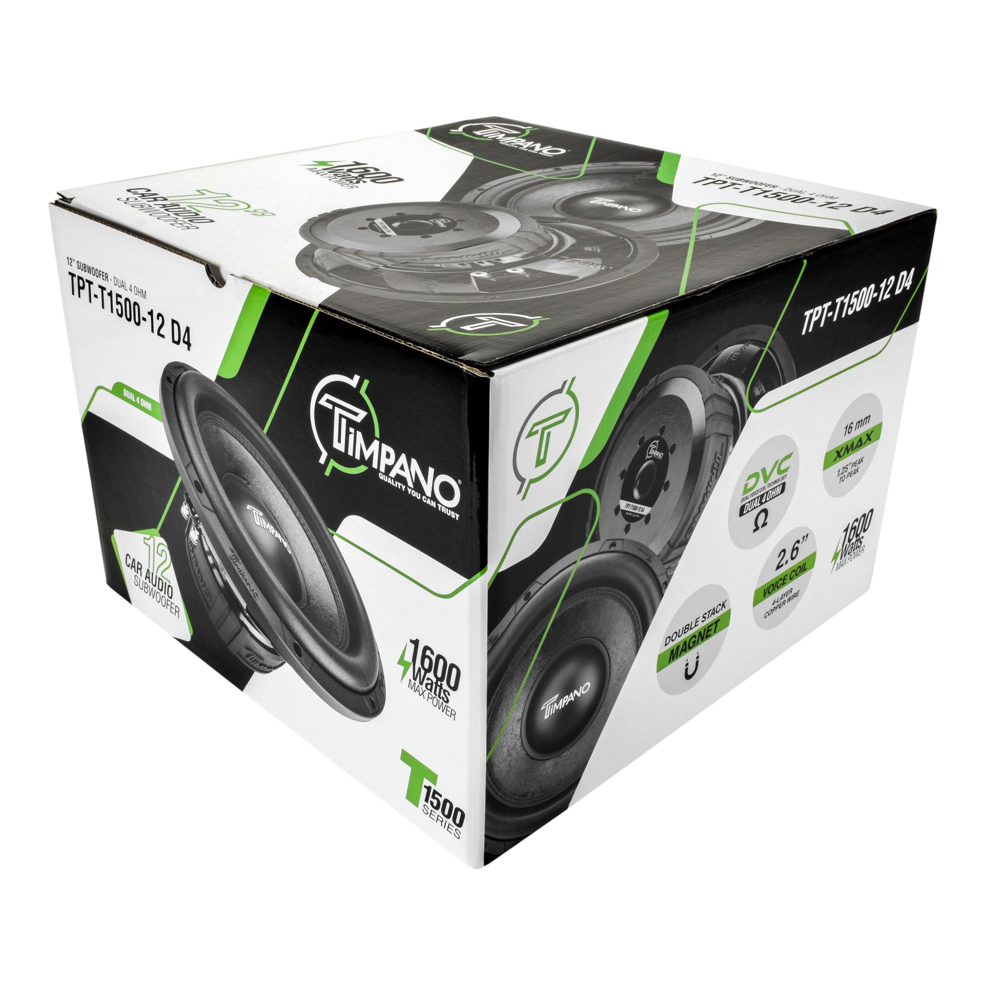 Timpano 12″ Car Audio Subwoofer 1600 Watts Dual 4 Ohm TPT-T1500-12 D4 Daily Banger– 4-Layer 2.6″ Copper Wire Voice Coil– Double Stacked Magnet at unbeatable Price Range