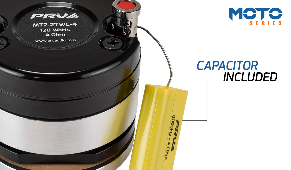 • A capacitor is included for protection from damaging frequencies at high power. Mounting hardware and a tightening tool are included. Also available in Black Finish.