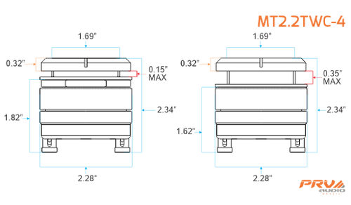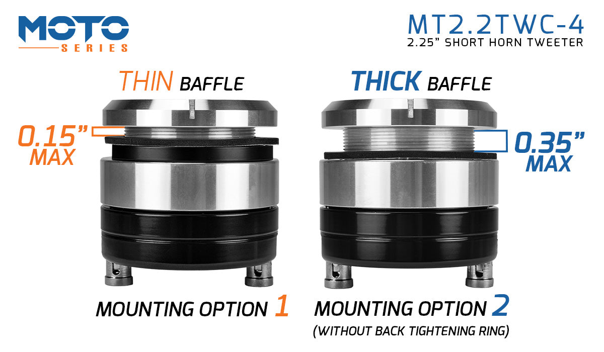 Another unique feature of the MT2.2TWC-4 is its two mounting options for flush mount without having the treads exposed. You have the option to flush mount on thin baffle cutouts and be able to tighten it from its slotted front ring on more space constrained installations.