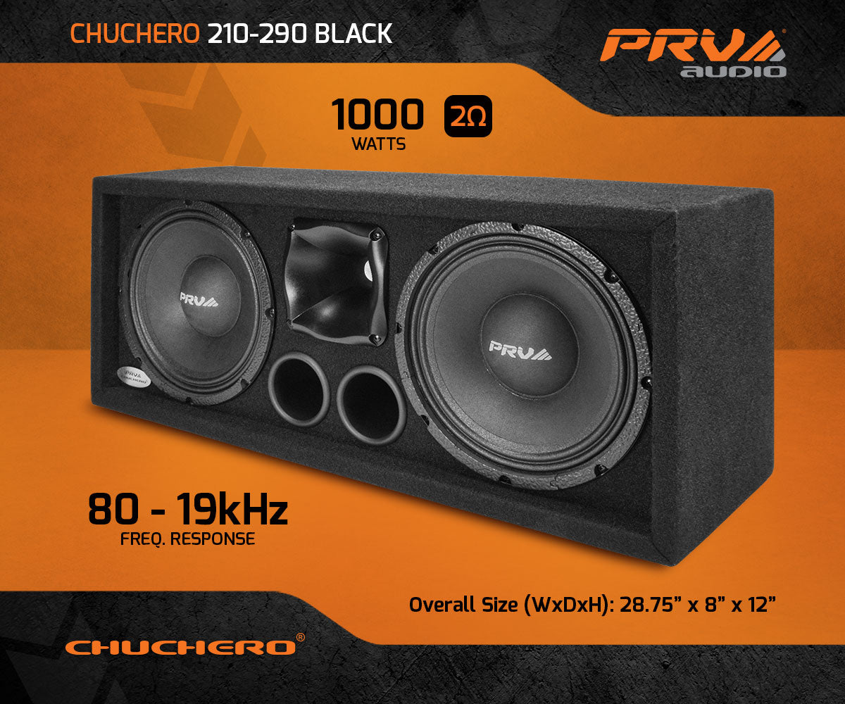 PRV Speaker box CHUCHERO® 210-290 is the easiest way to add a very loud, 1000 Watt sound system to your vehicle without modifying it.