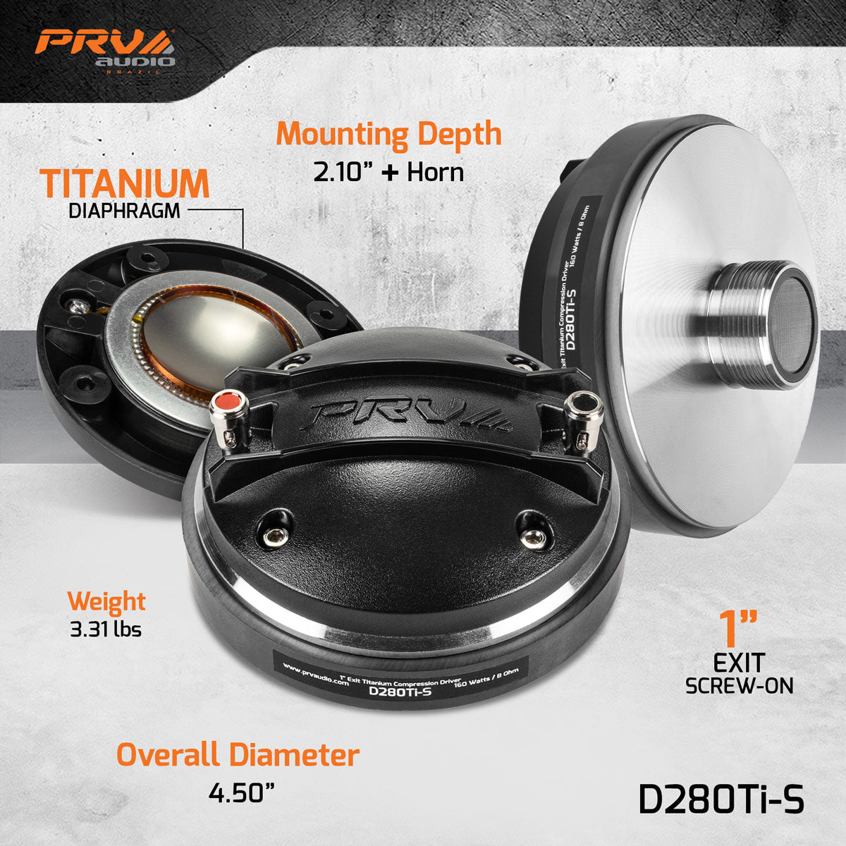 PRV 1″ Exit Screw-on High Frequency Driver 160 Watts 8 Ohm D280Ti-S – Titanium Diaphragm 1.75” Voice Coil, Premium Cabinet Replacement Driver