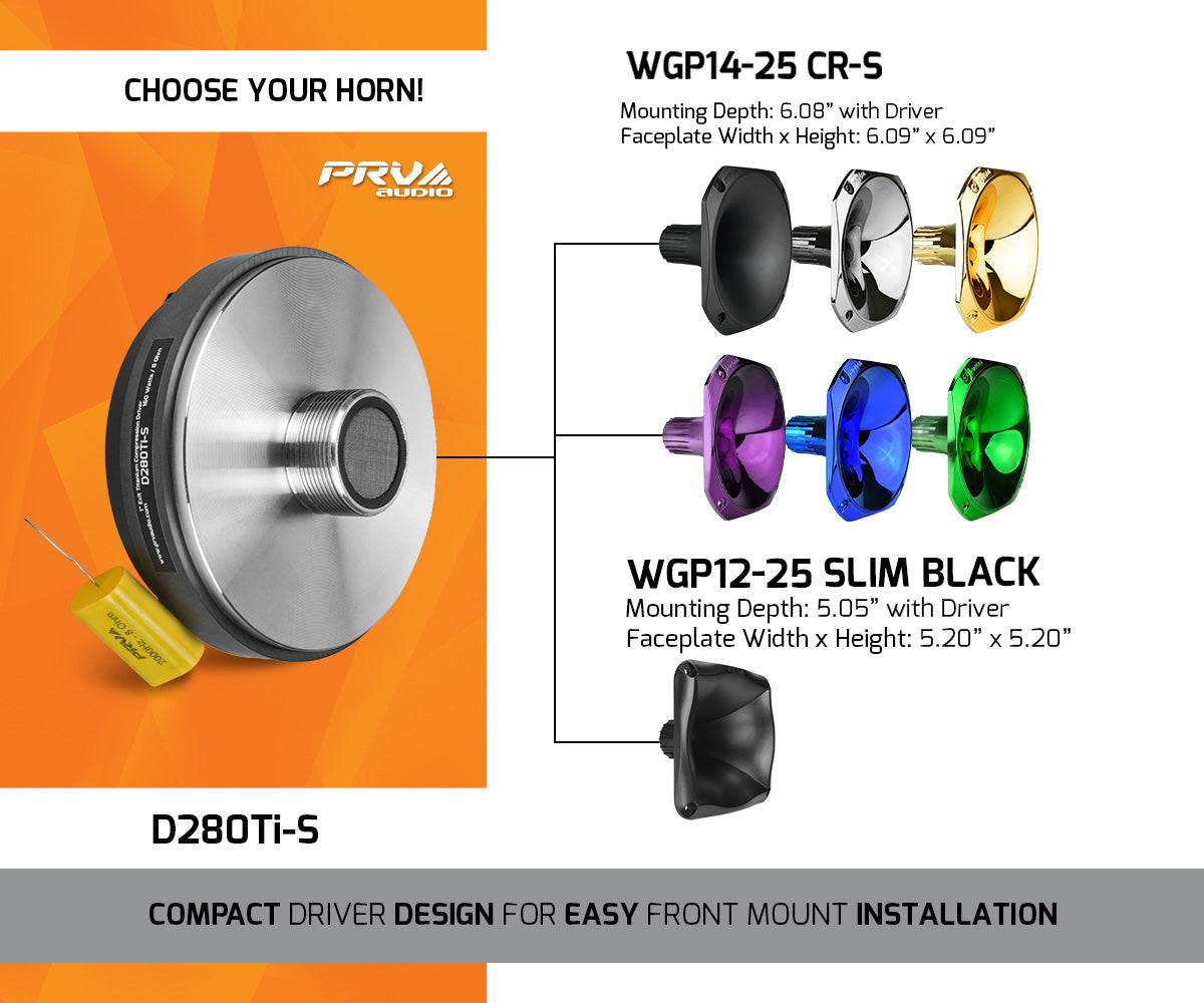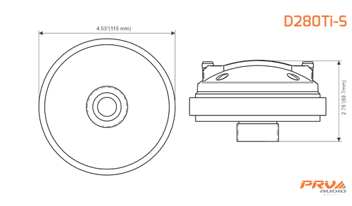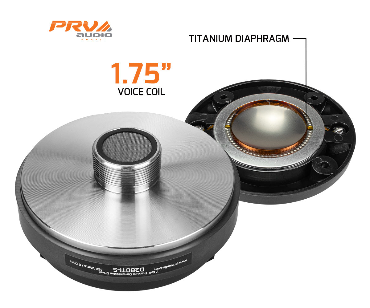 The titanium diaphragm is attached to a 1.75″ diameter copper-clad aluminum wire with Kapton® former for a 160 Watts RMS musical power handling, when used with recommended HPF using PRV Digital Signal Processor DSP
