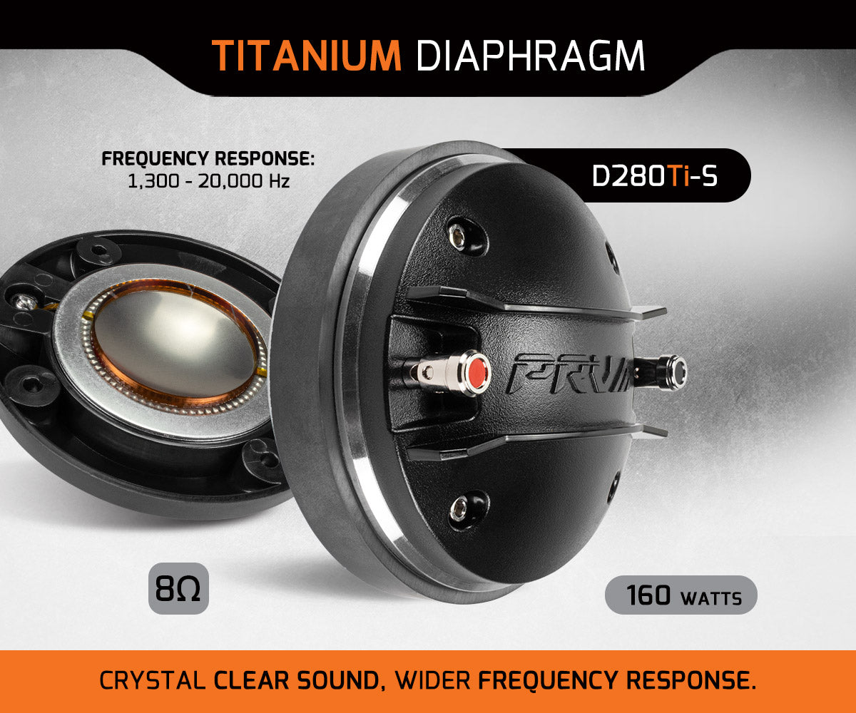 The D280Ti-S high frequency compression driver, with superior audio clarity and power, is designed to output high sound pressure levels, making it perfect for professional sound systems. This is an excellent upgrade for DJ speaker cabinets with screw-on horns.