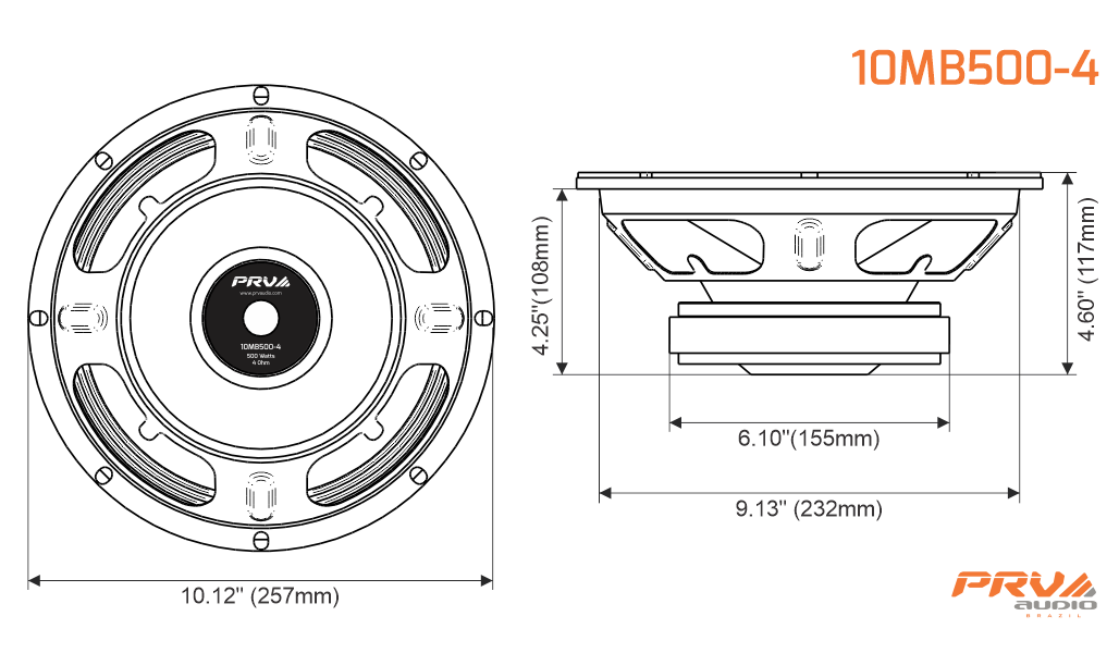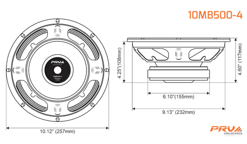 PRV 10″ Midbass Speaker 10MB500-4 PRO Audio 500 Watts / 4 Ohm – Loudspeaker
