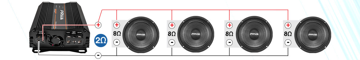 1 Channel Configuration for 4 Ohm ComponentsIts high power output channel allow you to install 2x 4 Ohm Speakers in parallel at 1 Ohm, giving up to900 watts per component.