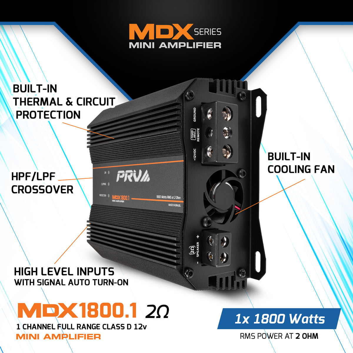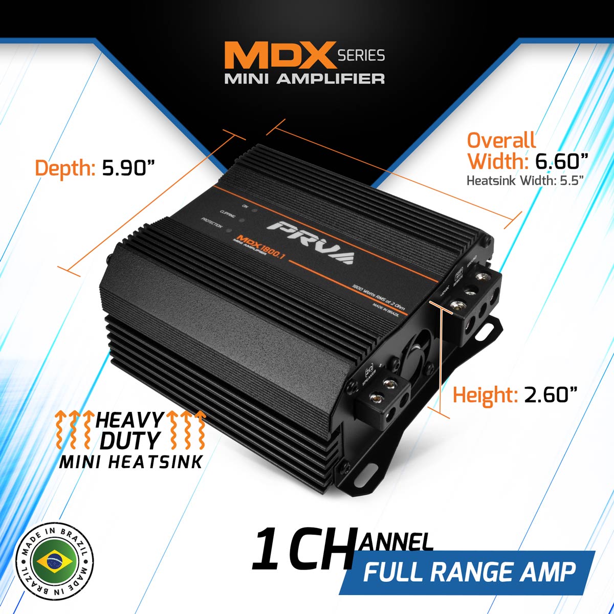 PRV Audio MDX1800.1 2 Ohm MINI 1 Channel Car Audio Amplifier 1800 Watts RMS at 2 Ohm – Full Range Ultra Compact Amp
