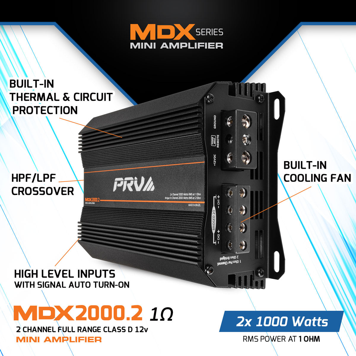 PRV Audio MDX2000.2 1 Ohm MINI 2 Channel Car Audio Amplifier 2 x 1000 Watts RMS at 1 Ohm – High Power Stereo Amp