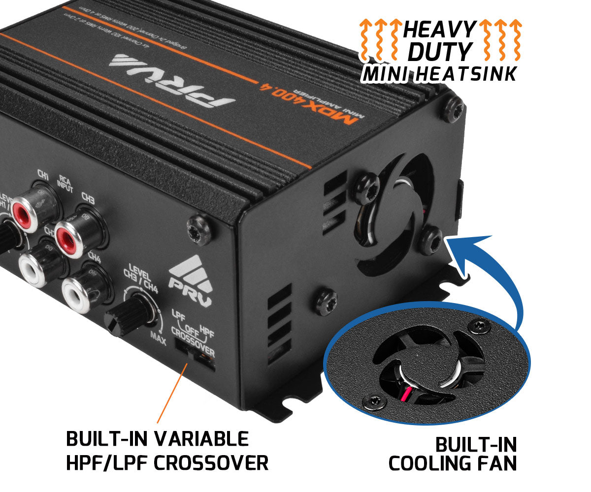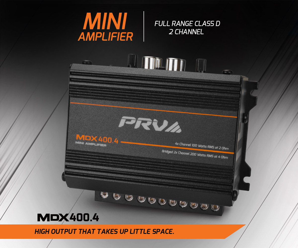 PRV Audio MDX400.4 2 Ohm MINI 4 Channel Car Audio Amplifier 4 x 100 Watts RMS at 2 Ohm