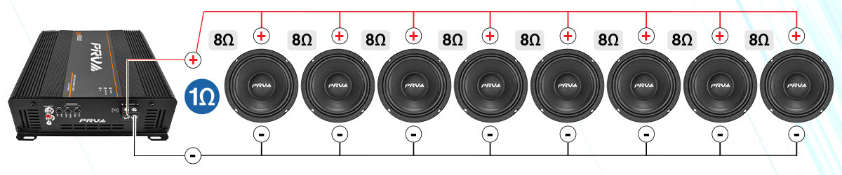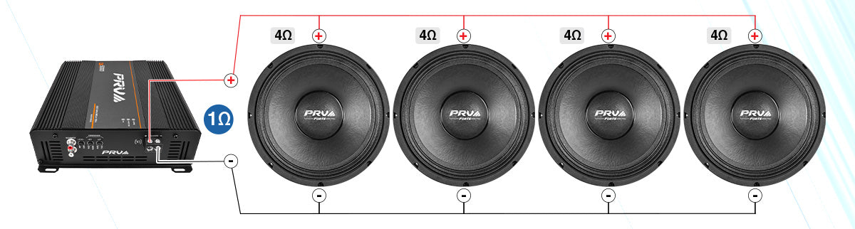 Its high power output channel allow you to install 8x 8 Ohm Speakers or drivers in parallel at 1 Ohm, giving up to 625 watts per component..